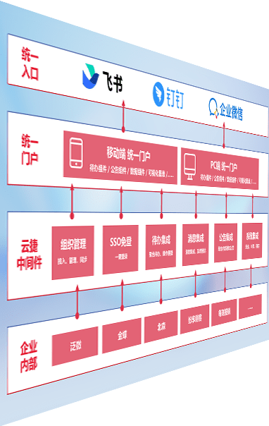 对协作平台提供支持服务,,,支持企业应用与协作平台对接,,,包含组织同步、、消息集成、、待办集成等。。。。支持目前主流的协作平台:钉钉、、、企微和飞书。。。。